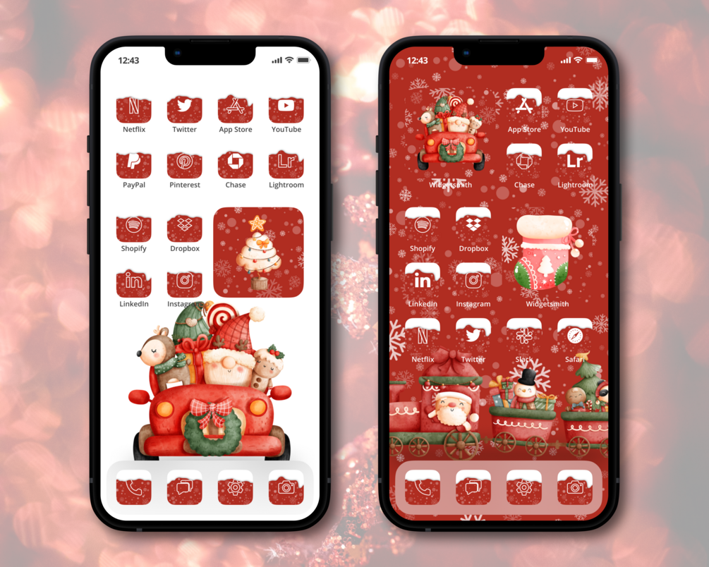 Take your iPhone home screen to the next level with this beautiful set of Christmas App Icons + Bonuses.