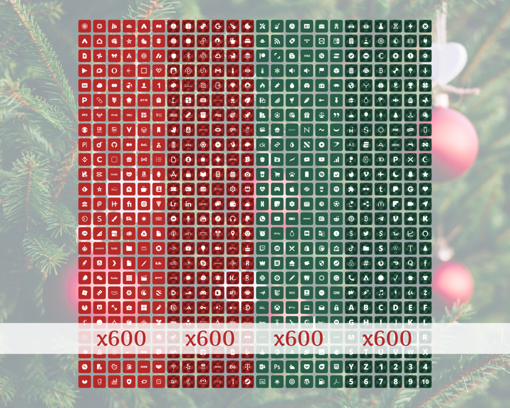- 2400 Christmas App Icons: 600 Icons - 4 Styles