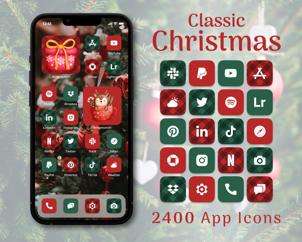 Take your iPhone home screen to the next level with this beautiful set of Christmas App Icons + Bonuses.